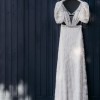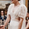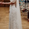 The dress has embroidered tulle all over, with cut-outs around the waist and through the back, almost giving it a backless look. It has short, see-through puff sleeves. It also has a slit in the underskirt at the back, which is really unique! It's very fitted and flows into a trumpet fit at the bottom, with a very short train. It doesn't have cups sown into the bust. I felt incredible in this dress and would love for someone else to enjoy it now! It has been professionally dry-cleaned and has no flaws. The only alteration it's had is being taken up slightly at the hem, so is the exact measurements of a Rembo Styling size 8.