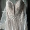 A beautiful, brand new, unaltered Mari Lane dress. We pushed out the wedding date and now are selling our dresses. ****Sleeves included!**** Please see the pictures of the dress hanging. This dress hasn’t seen the light of day and (of course) comes with a garment bag from the boutique we got them from.