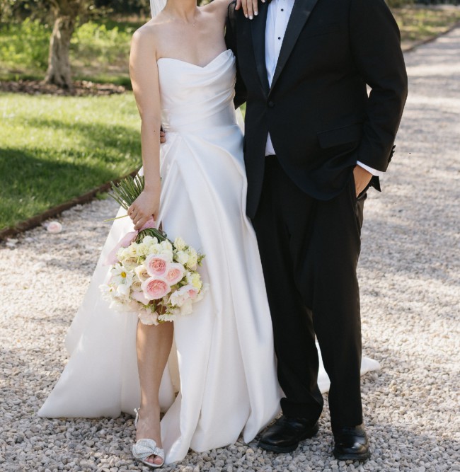 he dress is absolutely stunning and breathtaking and will not disappoint. It fitted absolutely perfectly around the waist and was very flattering. A total classic style with a modern twist. I only wore this dress for a couple of hours for the ceremony part of the day before changing into a second dress.