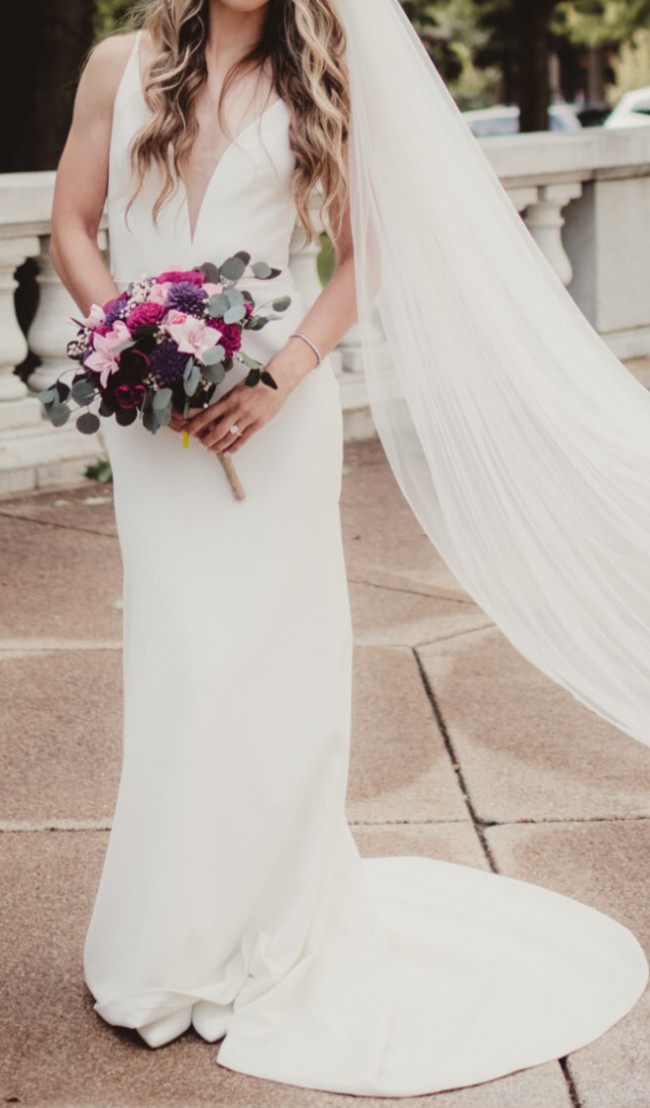 This dress is stunning, lightweight, and incredibly comfortable! I hope someone else will enjoy it as much as I did. The plunging neckline and spaghetti straps perfectly complemented my broad shoulders and smaller chest. The sash added a flattering detail, but it’s easily removable if you prefer a simpler look. The clean lines paired with the lace back give it a beautifully feminine touch. I've included photos from both the designer and myself, and I’m happy to share more!