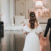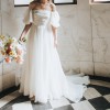 Size 2 Leanne Marshall Sequoia silk gown. Originally $3500. The gown is made of beautifully textured ivory silk organza and has a draped bodice and off-shoulder puff sleeves. Full A-line skirt with side slit and train. Silk lining and zipper up back. Very whimsical and perfect for a garden wedding. I loved wearing this dress and hope another bride will love it too.