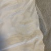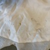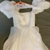 True to size. The dress has been professionally dry cleaned but unfortunately they were unable to get a few stains out of the bottom of the lining (I had an outdoor wedding). The outer layer of the dress covers the lining so the stains don’t show. Other than that the dress is in excellent condition.