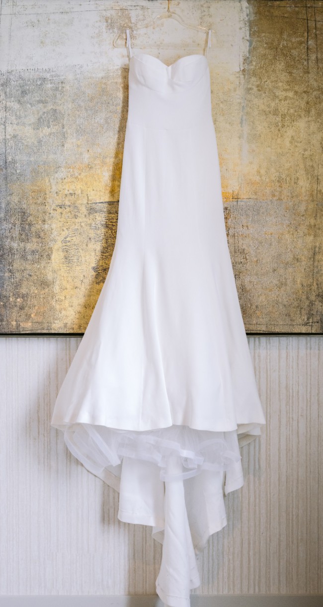 I also added a French bustle to tuck the train up and under for dancing. Besides the bustle, I also had alterations to take in the waist and bust as well as hem the dress to my height plus heels.