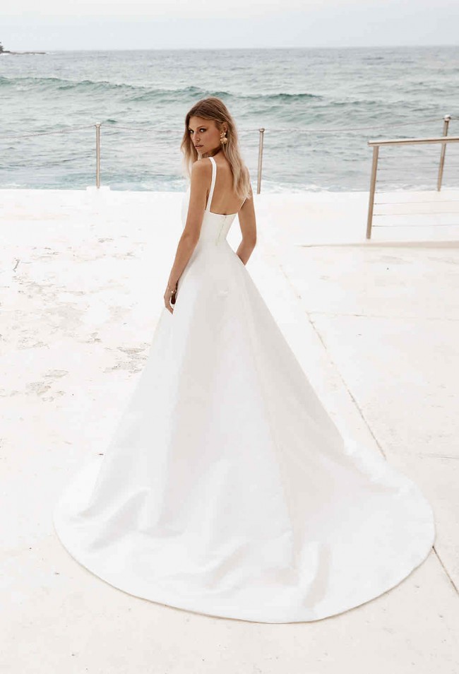 Chosen by Kyha Macpherson dress, bought as a sample so has some indication of being tried on but no stains, marks or rips. This is an unaltered sample size 4. Zipper is missing a piece in the back but does not affect function and is easily fixable! This dress originally retails for $5395 without tax. Only selling because I plan to just wear the dress I originally bought for reception for the entire wedding instead! Please message me for more photos!