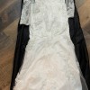 beautiful gown, Absolutely fell in love with it but plans changed, it has lace sleeves with white flowers all over it, as well as Beautiful placed beading. The flow of this dress is amazing!