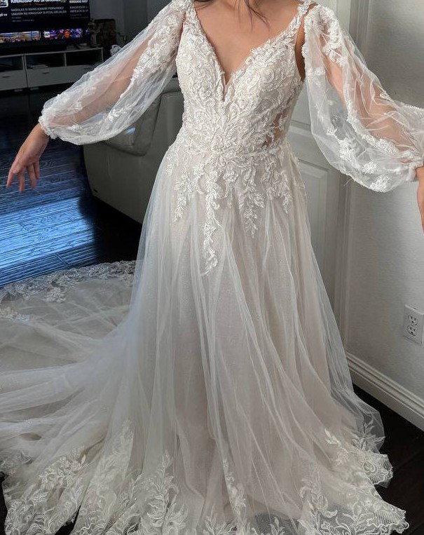 Honestly felt pressured to buy this dress and although it was absolutely gorgeous, it wasn't the style I was looking for. Fortunately, I was able to find another dress that resonated with me better. I wasn't able to return this, but the dress is in top condition and was delivered straight from the manufacturer. It would be a waste for it to sit in my closet. I am more than happy to help another bride find their dream dress and I hope this one is yours!