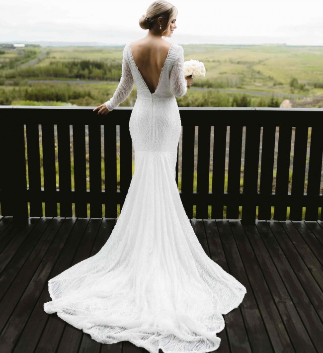 - Sleeves shortened, length shortened, bustle added