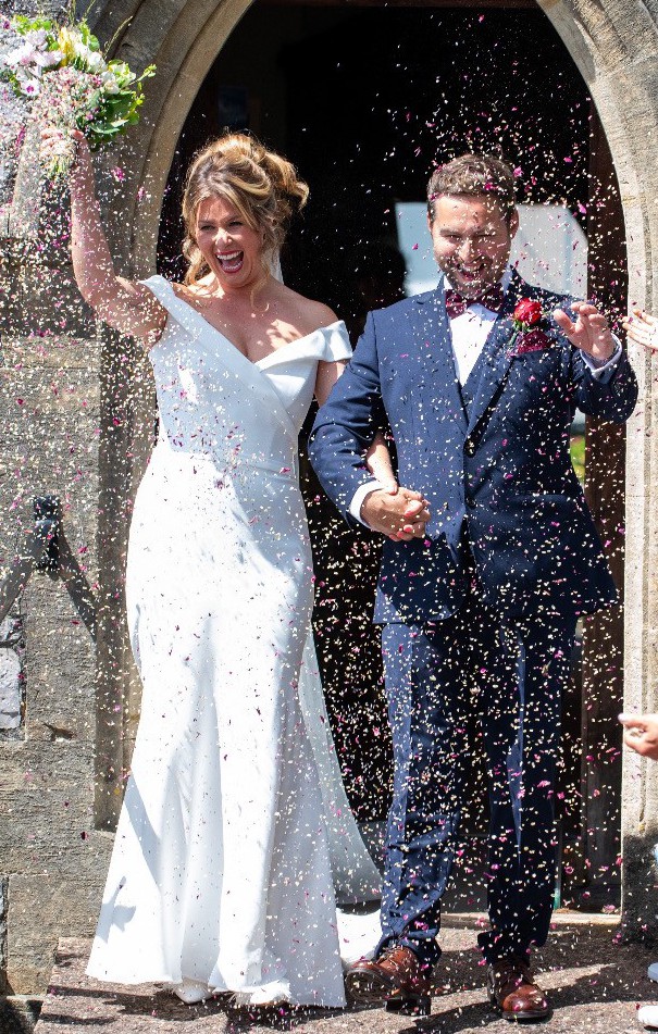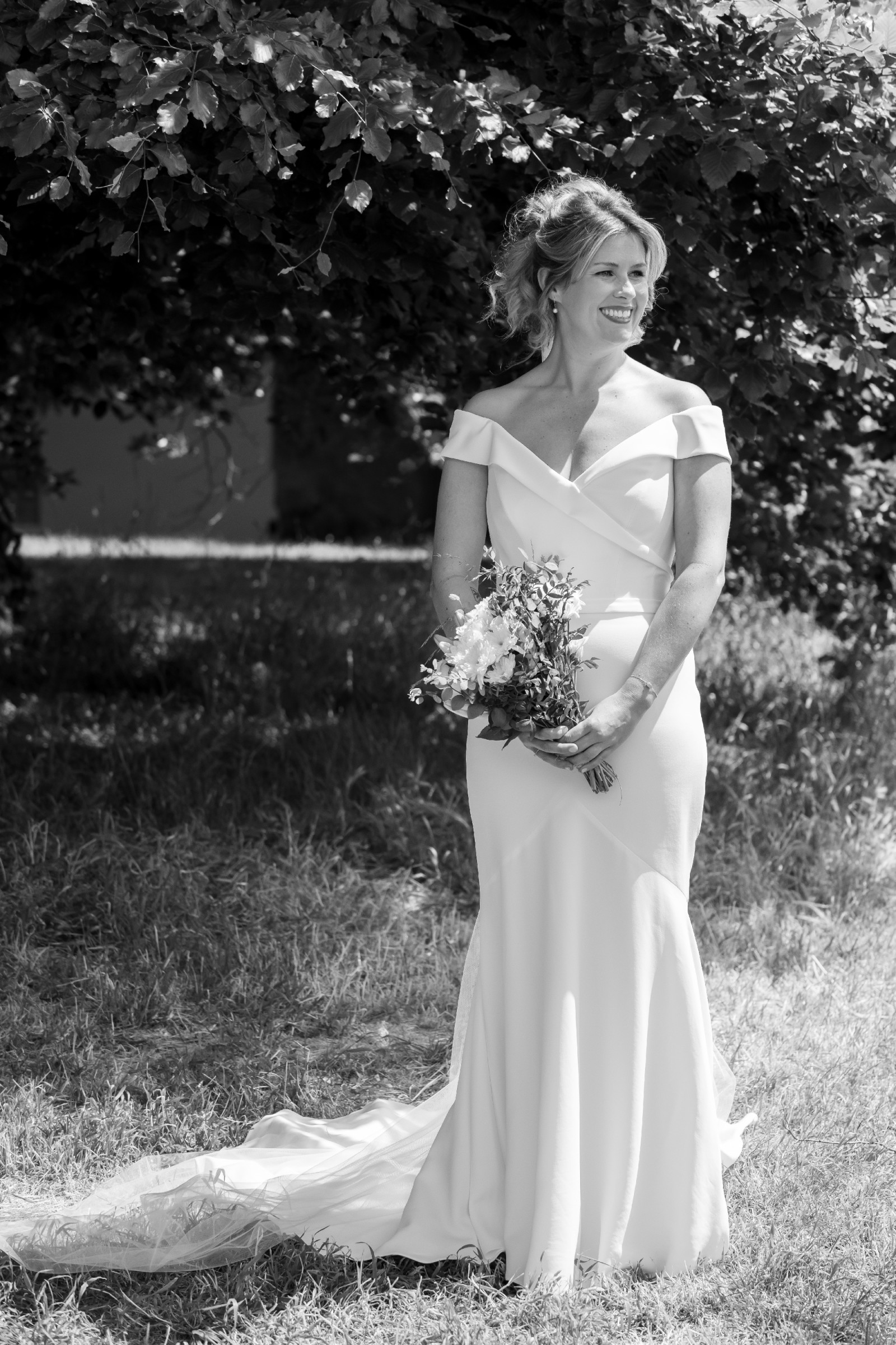 This stunning dress from the Forever Modern Love Collection by Suzanne Neville is a true embodiment of elegance and romance. Having worn it on my special day, I can attest to the beauty and craftsmanship that went into creating this masterpiece. The off-the-shoulder neckline beautifully frames the collarbone, adding a touch of sophistication while ensuring comfort and support throughout your celebration.