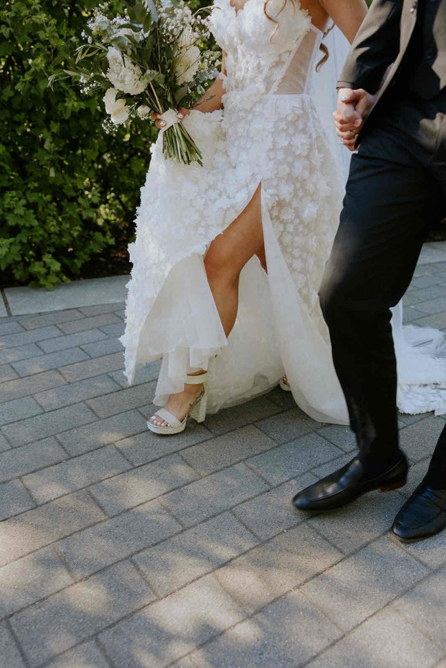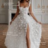 Hand embellished flower straps that can be worn up right or off the shoulder. Hundreds of hand placed flowers, full train/ slit, boned corset that is adjustable to many size types! Unique, limited bridal collection- this style is now discontinued and will no longer be available world wide. The designer only allows a certain amount of people to wear the dress before discontinuing it, so it keeps its uniqueness. Dresses completely handmade with the highest quality fabric. Rosie Etienne balances classic couture techniques with elegant fabrics sourced from Europe, while each piece is slowly hand made. Please let me know if you have any questions :)