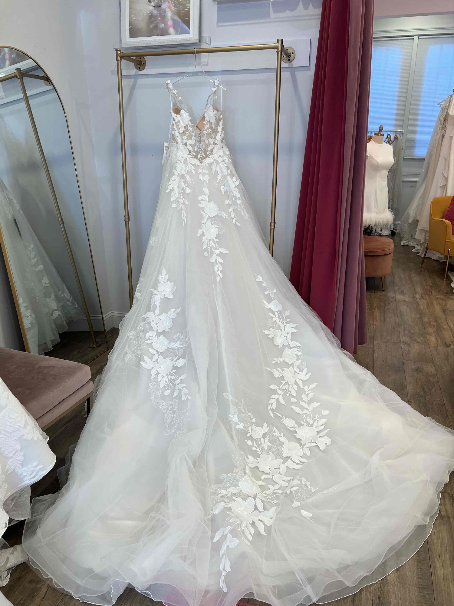 Gorgeous sample from our bridal shop💕 💕Please do not make offers unless you are ready to purchase. Shipping costs are added after the offer is made. Flat shipping cost in the US is $50💕 From the Designer: The charm of nature permeates the enchanting details of KAMERIE. This princess-cut dress features a sweetheart neckline bodice, sheer details on the back and glitter lace and rhinestone embellishments that extend to the thin straps and voluminous tulle skirt to create a romantic fairytale finish.