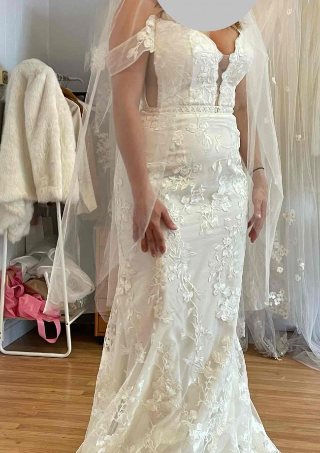 Purchased in 2021, Jane Hill- Lexie gown. Brand new, in original garment bag and hanger. Beautiful gown never worn , never altered. All lace. shoulder loops. Fit and flare.