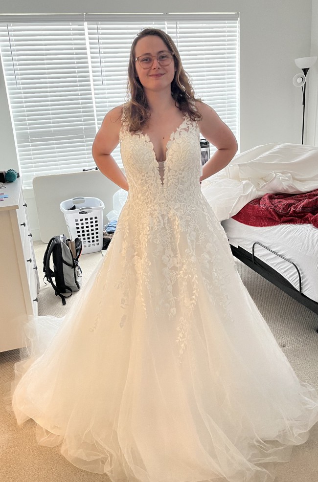 This is an Allure Romance sample dress with the original tags attached. It’s a gorgeous dress and I felt beautiful in it.
