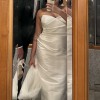 Italian Stretch Mikado tulip neckline draped column gown with detachable overskirt (not shown, chose not to wear it as it was 100 degrees out!).