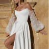 Includes the sleeves and the original garment bag. The sleeves are detachable and has a high slit if wanted.