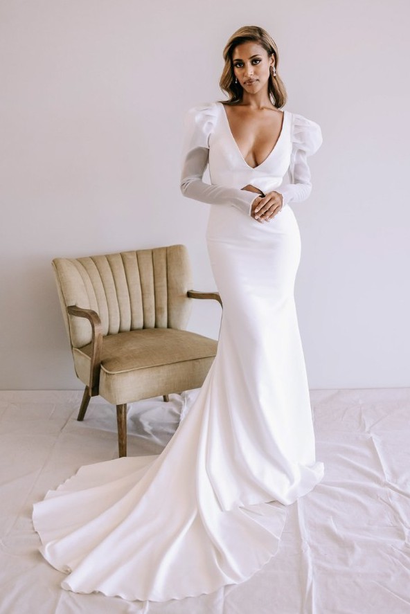 The photos attached with the model display the sleeves which I never intended to wear but still have should you want to put them back on. I am naturally a size “small” in tops, bra size is typically a 34C. The bust was big with plenty of material to alter as needed (as seen in the photos of me wearing the dress). I have an exceptionally short torso, with longer legs, relative to my height. I feel that this dress would look great on someone with a longer torso than I, which is most people my height!