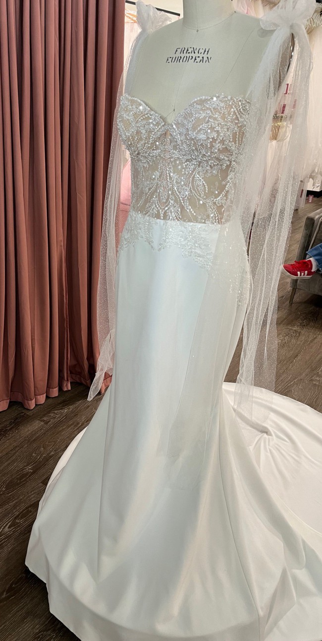 Crepe skirt with a beaded bustier top with glitter bow straps
