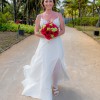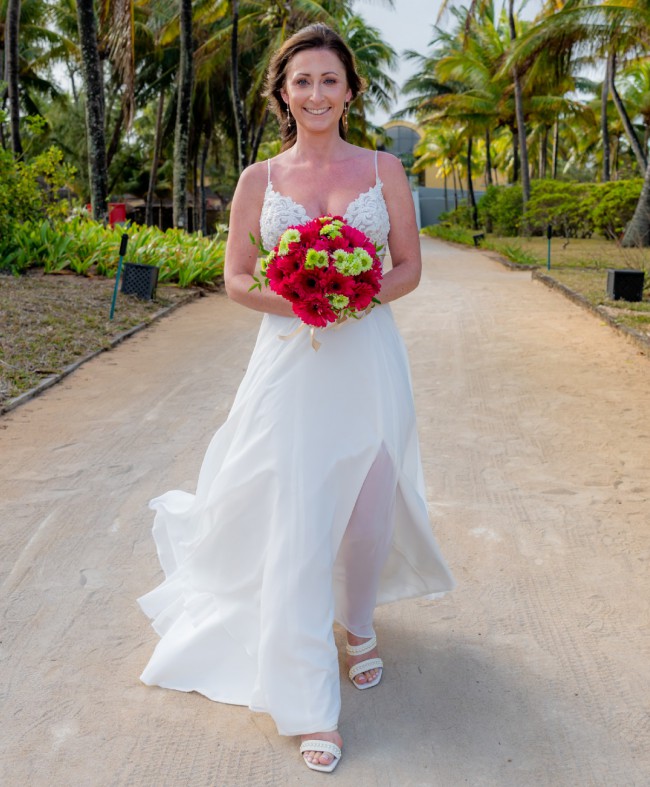 I had most of the train cut off so it is longer at the back but not by loads just enough for a perfect beach wedding or someone who doesn’t want a long train.
