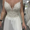 Poppy by Rebecca Ingram is the perfect way to make a statement on your special day. Made with Aurora chiffon, the exquisite design features a sheer organza bodice with beaded lace motifs over glitter tulle, as well as a plunging illusion V-neckline and beaded spaghetti straps. The covered button over zipper closure and side slit add to the stunning effect. Perfect for any bride seeking a classic yet modern look.
