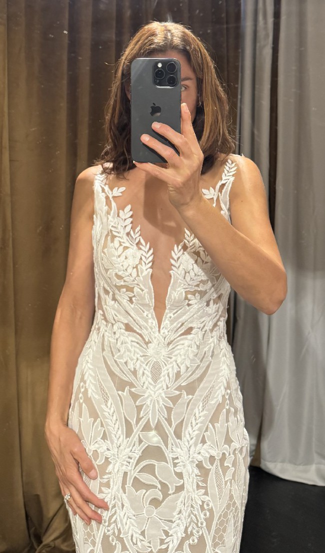 This dress has never been altered or hemmed.