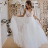 Arabella is for the pick-up-your-swishy-tulle-skirt and run-through-the-fields type of girl. The tiered ruffle-hem tulle skirt falls over a more fitting, lace detailed underskirt.