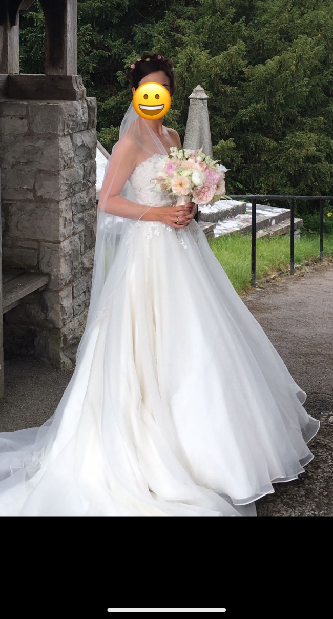 Comes with Joyce veil which was not dry cleaned so has very tiny mark to edging but could be cleaned out.