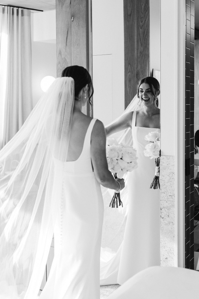 Minor alterations to the waist, straps slightly shortened, hemmed and bustle added.