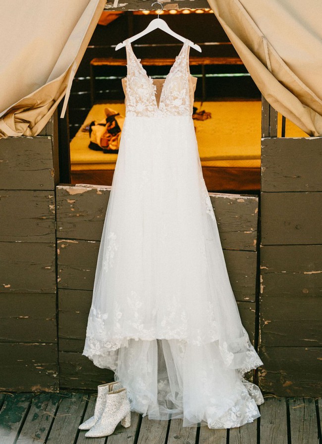 - Hemmed several inches (I am 5'7 and wore 2.25in block heels, dress barely skimmed the floor)