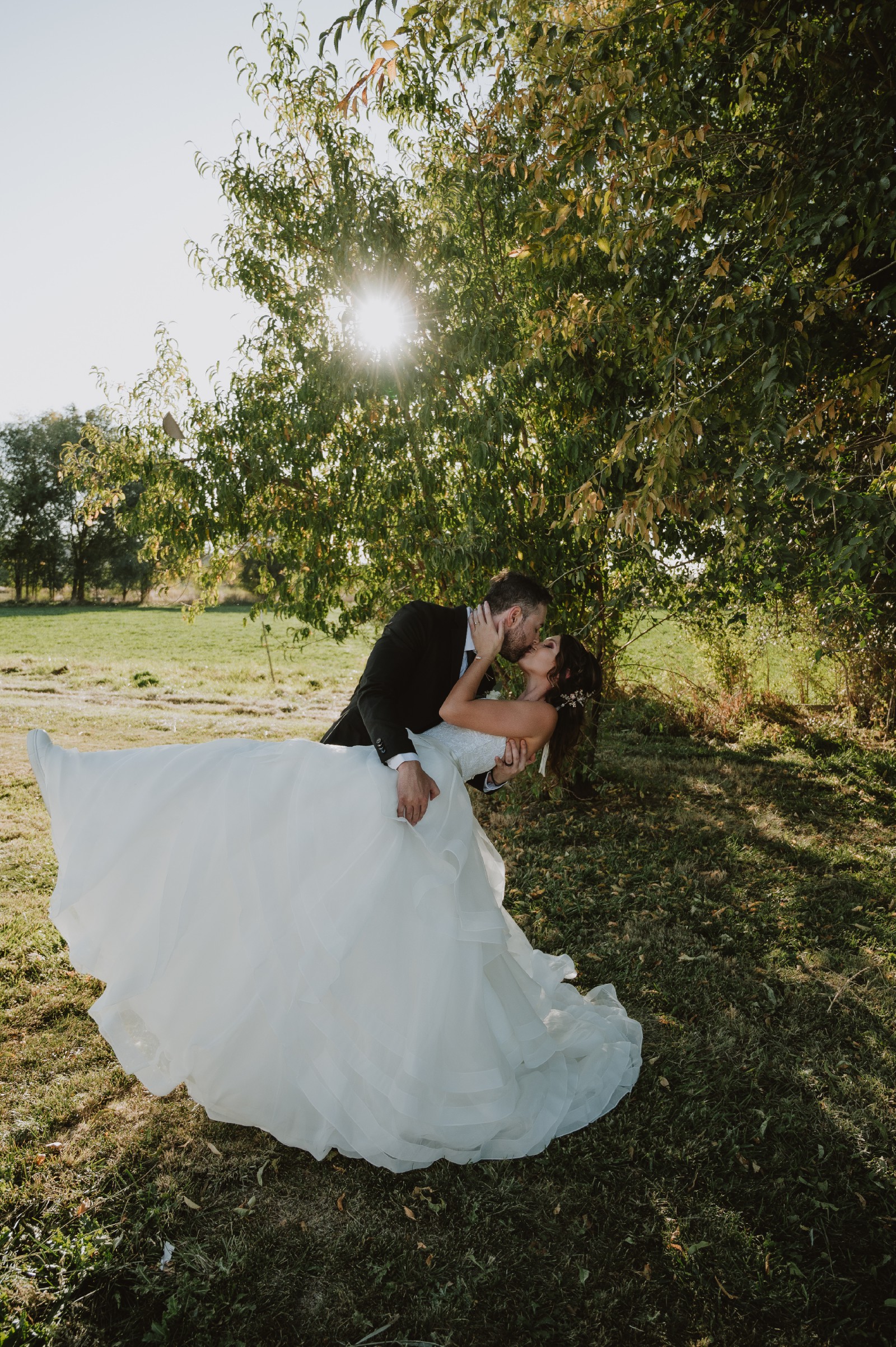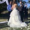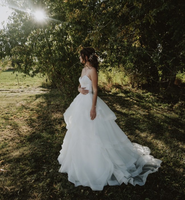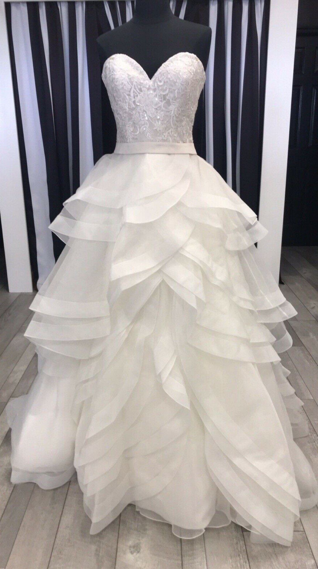 Designed to mimic rose petals, the ruffles of this strapless ballgown's full skirt unfold gracefully from the satin waistband. This dress was so romantic! I wish I could wear it all the time.