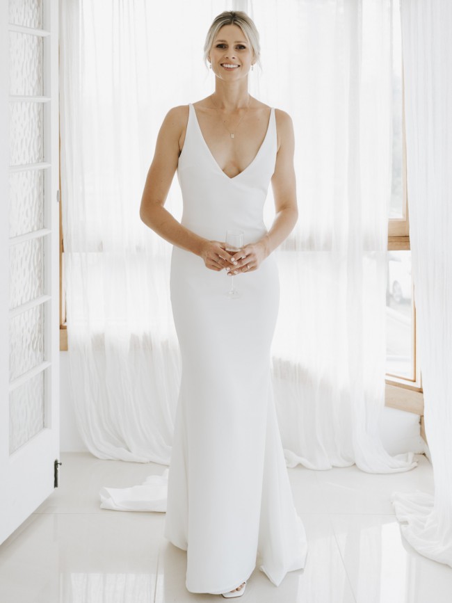 “Archie is a sexy and sophisticated combination of both modern and classic. Seamlessly , soft, double french crepe, her figure hugging design is created to completely celebrate every curve and turn of the body while draping dramatically with her signature cowl back.” - made with love