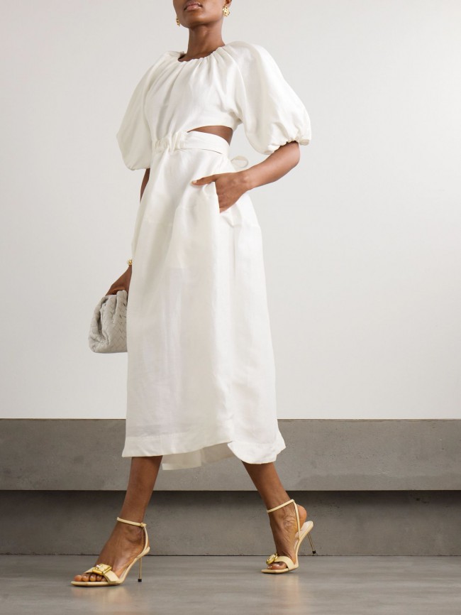 Aje, Mimosa Cut-out Linen Midi