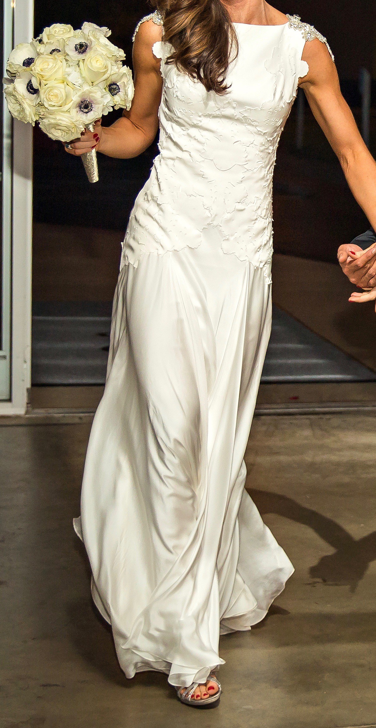 This Carol Hannah gown is a rare find, designed for a bride who values artistry, quality, and timeless style. Ideal for a formal wedding setting, this dress combines luxurious materials and intricate details to create a one-of-a-kind look.