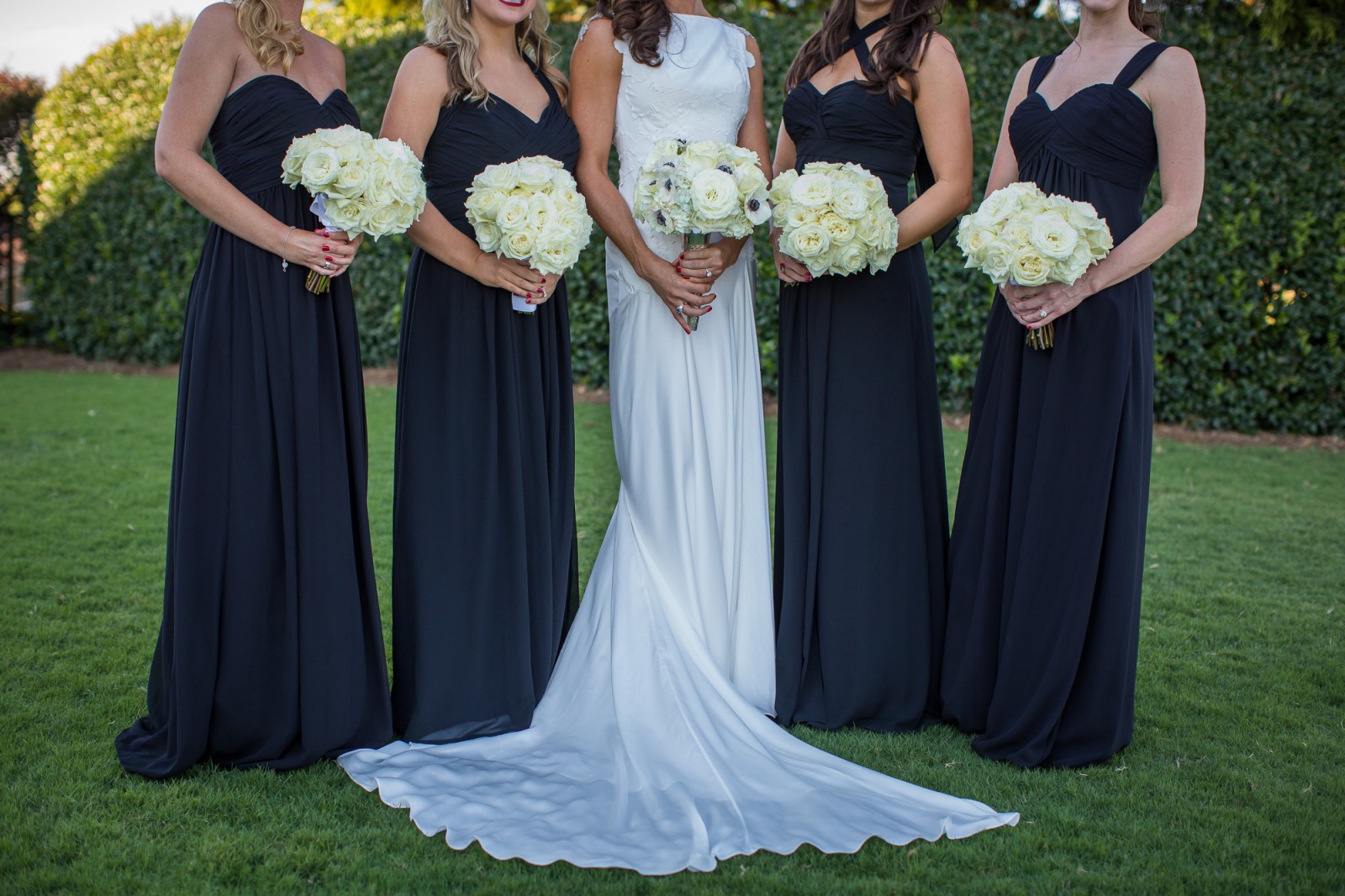 The bodice and upper skirt are adorned with hand-applied, floral-inspired appliqués, adding texture and an organic, handcrafted feel. This artistic detailing is both subtle and eye-catching, creating depth and dimension.