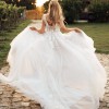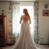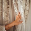 Just before the wedding it had two holes at front tulle layer, rather than stitching, the holes have been cut out in straight line all the way down to the bottom. Creating layered look. This can only be noticed when moving the front of the dress vigorously. A picture with hand going through the dress is showing exactly what the cut looks like.