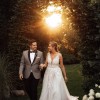 Designer dress in ivory with Smokey lavender under skirt. The dress has been altered where it’s been shortened by 1 inch.