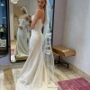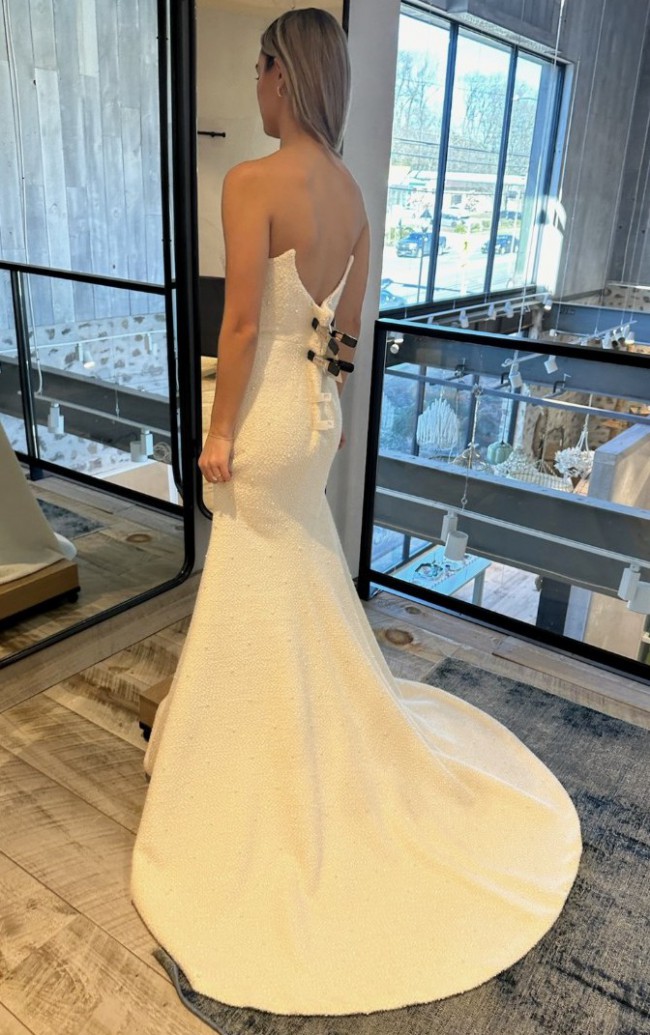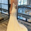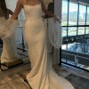 This dress has never been worn but it has been altered! I am [removed] lbs. Bra size 32 B. I ended up finding a different dress that I loved more but this dress is beautiful! It has been dry cleaned. Depending on your measurements there is still room to take the top and waist in. With the way it was altered it can be made a few inches longer and wider if needed!