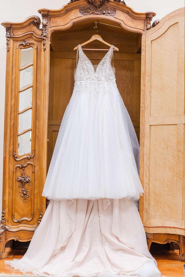 Hayley Paige custom made. Will include matching veil. Dress has been stored away but other than that in good condition. Make an offer!