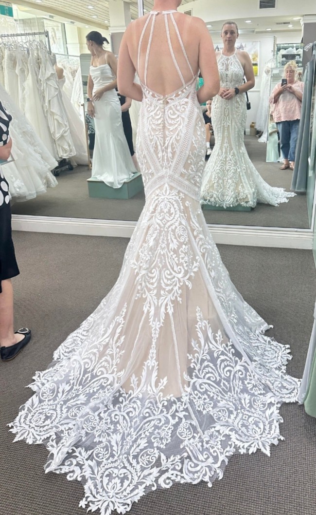 Rare find - "All who Wander" halter neck style dress with ivory lace and mermaid fit Purchased for $2699 brand new in 2024 from. Belles and Beaux Newcastle NSW 3/2/2024.