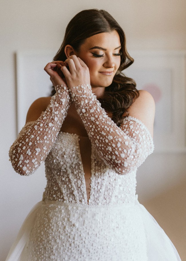 Extra material is available if you desire custom sleeves, allowing you to tailor the look to your vision. Hired over skirt from Team Vonvé. Embrace your individuality while celebrating a love that lasts a lifetime with this enchanting wedding dress, where every detail is crafted to make you feel like the belle of the ball. Make your wedding day unforgettable with a gown that is as beautiful as your love story.