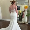 Style: The dress features classic yet contemporary elements, combining timeless lace detailing with a chic crepe finish.
