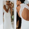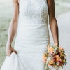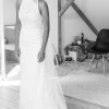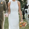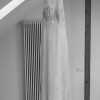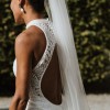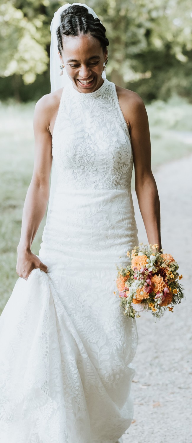 This gown is delicate, romantic and elegant. It is crafted in lace and beadwork and features a shimmering, lightweight design that shimmers beautifully when the sun shines on it. It has a halter neckline and a teardrop opening at the back which is breathtaking. The dress has a wonderful sewn in corset for additional support. The elegant skirt includes a layer for added opacity and warmth (all together five layers) that can be easily removed if you prefer the sheer look (to see the sheer look: https://www.rosaclara.es/de/produkt/kloe). I wore the dress with a floor-length veil, which I would add, if there's interest. I absolutely loved wearing this dress and felt like a million dollar in it and hopefully another happy future bride will, too.