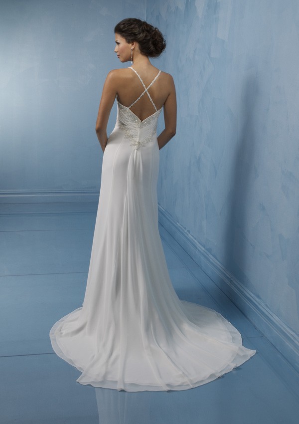 ELEGANT SILK CHIFFON BRIDAL GOWN WITH FLOWING TRAIN & EXQUISITE BUST AND BACK DETAIL (MR031)