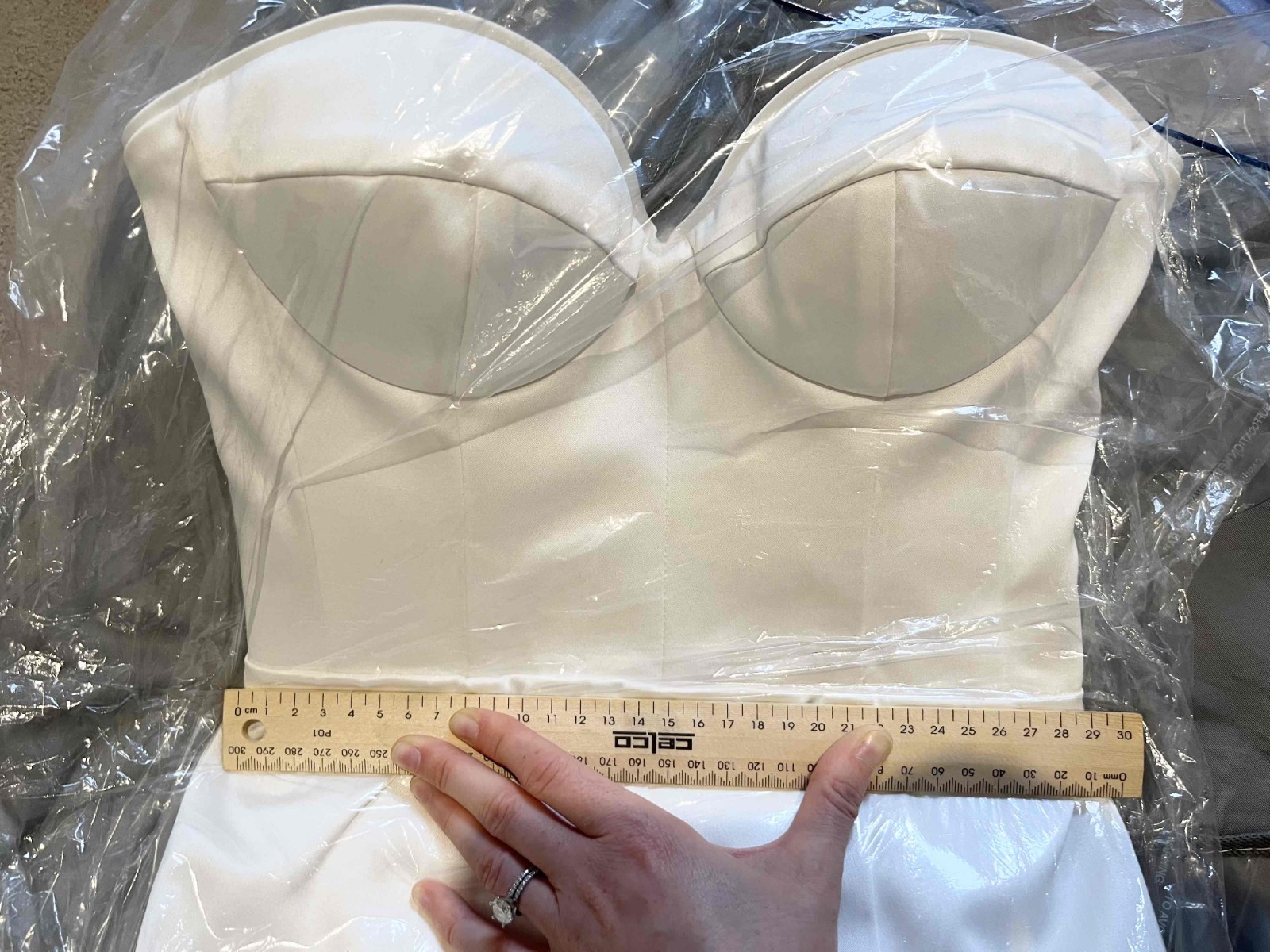 Fit: This dress is a size 4 (I am quite petite, usually wear a Country Road Size 4, Seed Size 4, Uniqlo XXS, etc). Laid flat and taut across, the waist is approximately 29cm across as per photo. This dress really hugs your figure in all the right places, creating a flawless, Barbie-like silhouette for a perfect, tailored fit for an A-B cup frame. Even though it was made to fit tightly to stay up, it was super comfortable yet did not fall down. If you want to look like a perfect doll on your wedding day, this is the dress for you. Leading up to the wedding I fell behind in my diet and work outs but the dress was working so hard that that my friends said my body looked supernatural on the day.