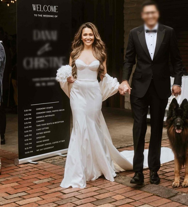 Cape: The gown comes with a chic, matching cape that gracefully drapes from your arms, adding a dramatic and ethereal touch as you walk down the aisle. I had it made especially in the matching fabric to the dress so it would be a real "vogue moment" when I walked in.