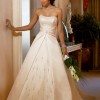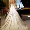 Scattered Beads on bust and middle of skirt and train. Gathered Waist detail with Diamante Brouche.