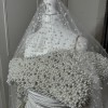 Pictures truly don’t do this dress any justice, I have videos I am more than happy to send as the pictures doesn’t show it’s true beauty and uniqueness. I cover up so I cannot show the beautiful pictures from my wedding day however I have pictures from the company shown and videos. This dress was custom made just for me every single bead and took 3 months to finish. This is an authentic WALONE FASHION dress and I am more than happy to show any proof. This dress is silk and has beautiful diamonds and has detachable out skirt if you don’t want that. Glove in the picture is not included as I opted not to wear it. Please feel free to ask me any questions I’m really wanting this dress to go to a beautiful bride a new home. Dress has been professionally dry cleaned and is spotless. VEIL INCLUDED.