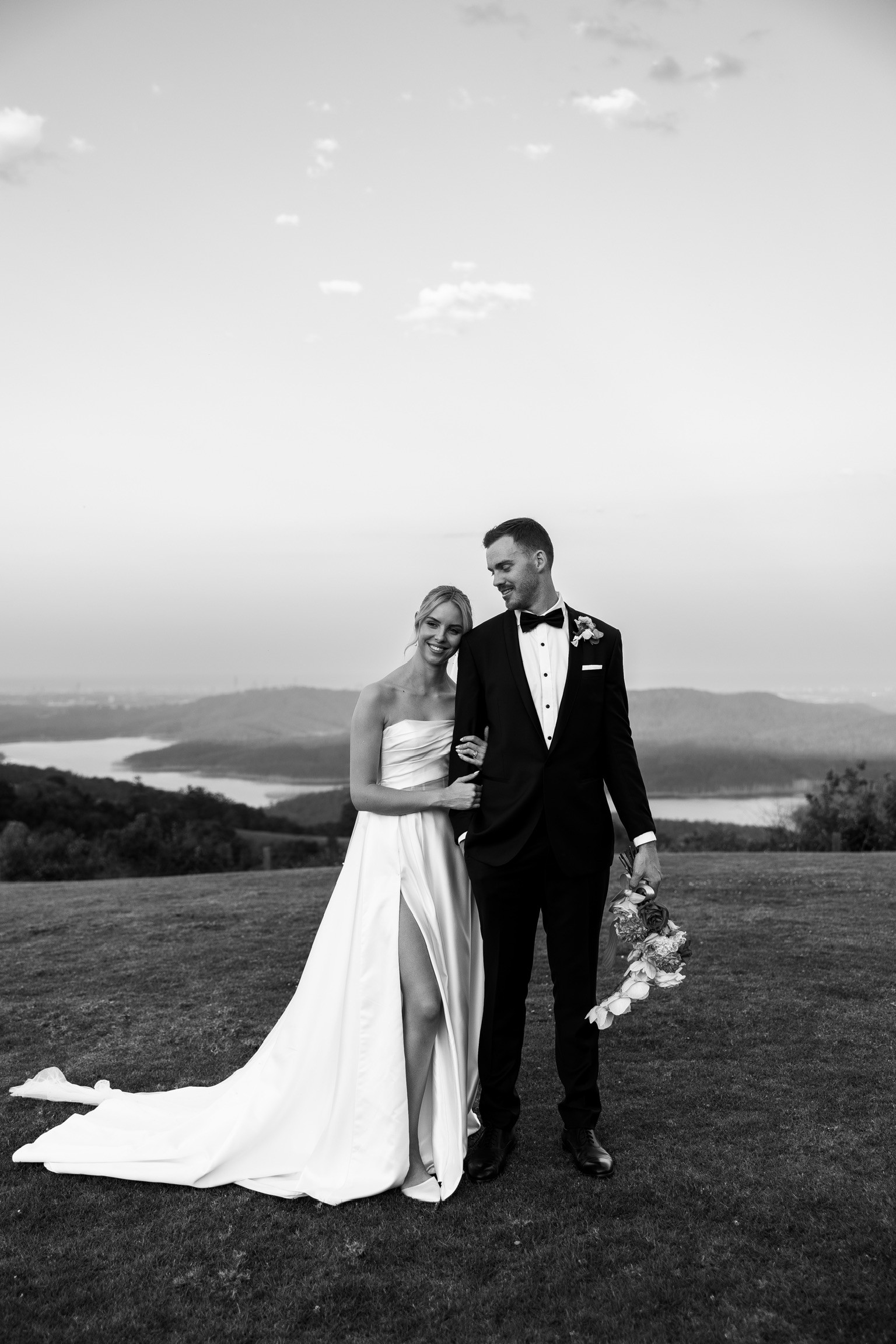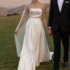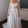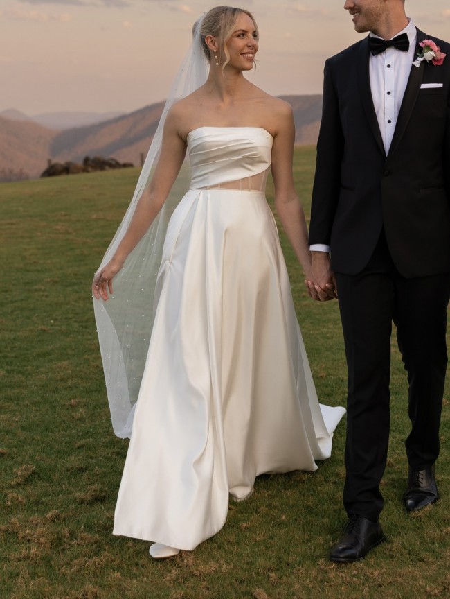 Dare to show a little leg with a high-cut split (or choose without if preferred) in the otherwise classic A-line skirt and train.