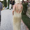 This was my dream reception dress. It's so unique and special and just sparkles IRL. The gold beads are so unique and add such a fun movement into photos. It's a size small but is knitted so its stretchy and comfy to wear. Would easily fit a XS or a M. Worn only once for about 3 hours, and in perfect condition!