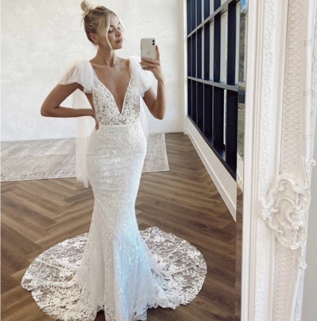 It is from Made With Love EmmyMae range(style is Peony). It has beautiful tulle shoulders which also trail at the back.