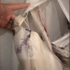 I absolutely adored my Ophelia dress. I however live in an apartment in SF and storage space is limited. Hoping that someone has been dreaming about this dress and can give it another life. Rebecca kindly made the dress in a split size for me - it is an 8/4/4. I listed as a 4 thinking that someone might be able to take in the bust or in the event someone has similar measurements to mine. I wore the dress for about an hour - in the church and for a quick 5 block secondline in New Orleans before changing into a different dress for the evening. It is in excellent condition except for a little dirt on the back of the train. This would likely come out with a little soap and water as it was only exposed briefly. I included photos of the front of the train (looks perfect) and the mentioned spots on the back!