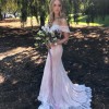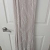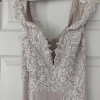 This is a custom, hand-sewn wedding gown that cost approximately $5k to create! It is a beautiful blush pink color with white embroidery and lace overlay. It has been dry-cleaned but the bottom is slightly discolored from being on the ground for the wedding, see photos for details. It is a size 4, my measurements are as follows: Bust 31, Waist 27, Hip 31. I am 5'6" and wore three-inch heels. This is a very soft, romantic gown. I would love for this gown to have a second life as it is so unique and stunning.